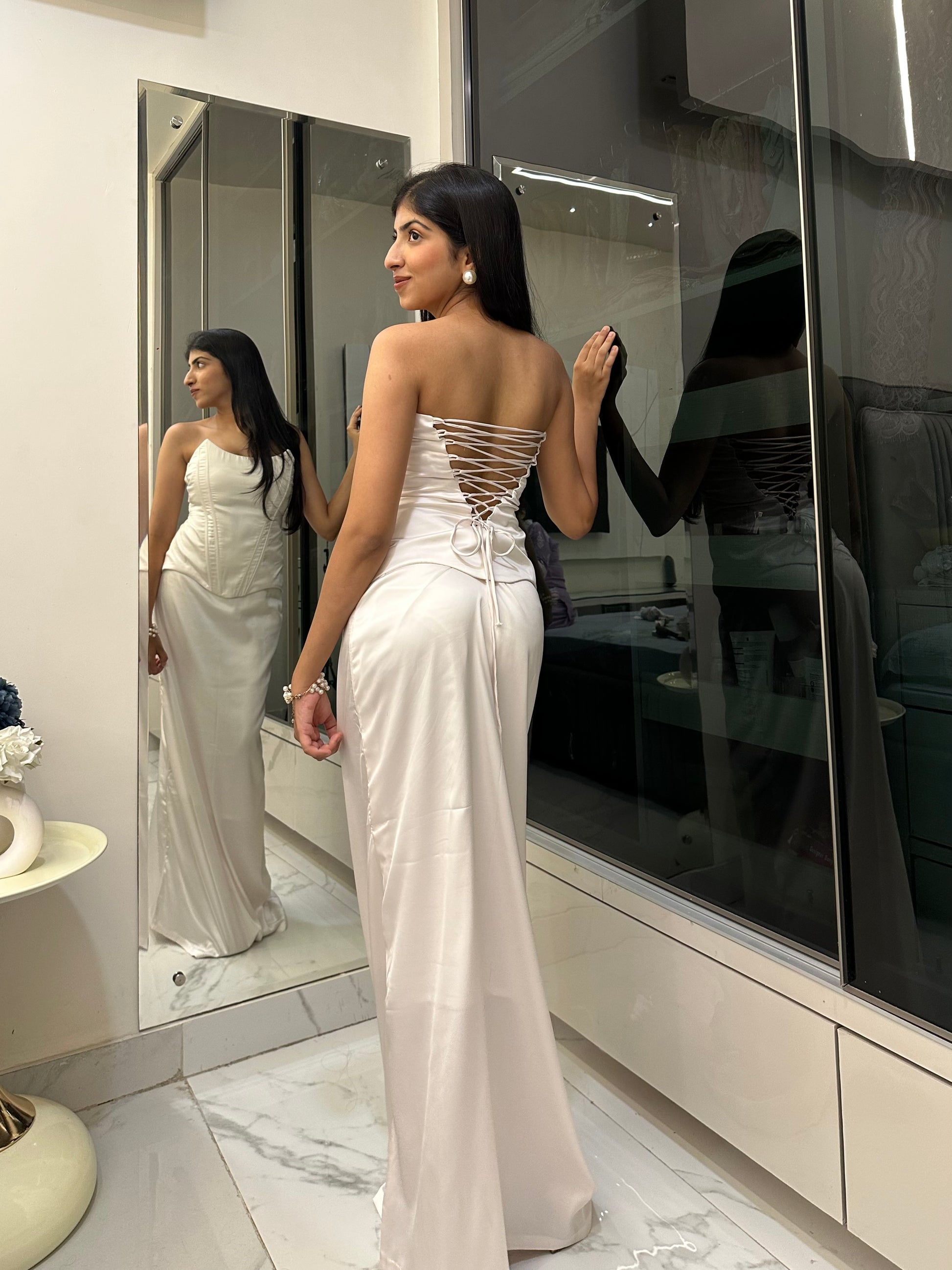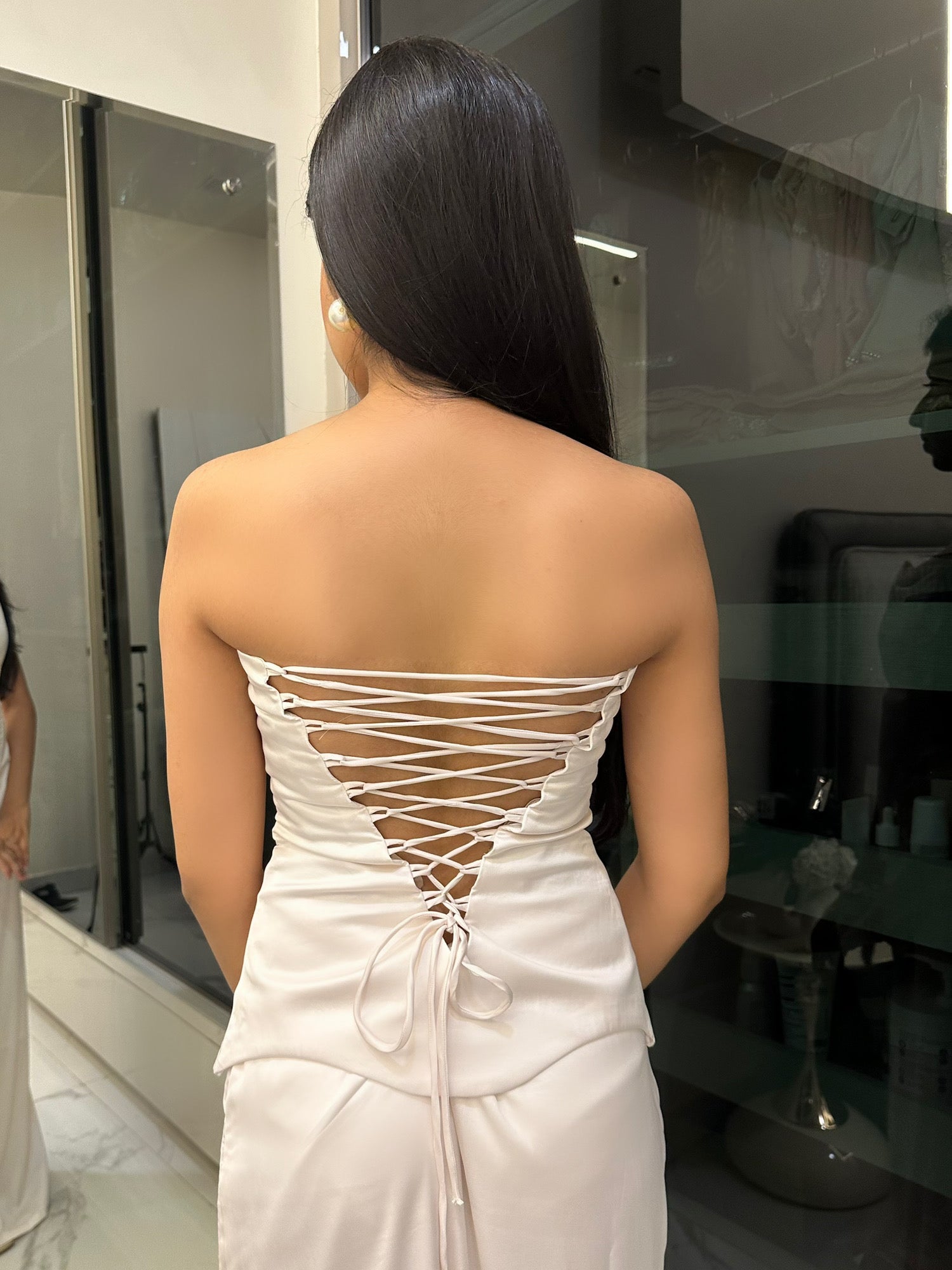 - Detail: Corset back.